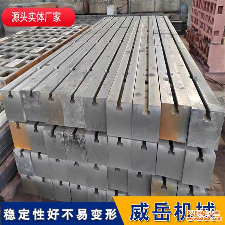 T型槽铸铁平台的T型槽是为重要的功能性结构,主要用于安装各种夹具、定位块等辅助工具,便于工件的装夹和定位。T型槽通常按网格状或井字形排列,槽间距一般为150mm或200mm的整数倍。T型槽的设计要考虑平台的用途和承载需求,槽深一般为槽宽的1.5-2倍。加工T型槽时首先要确保槽的位置精度,通常采用专用T型槽铣刀加工,先铣直槽再铣T型部分。
