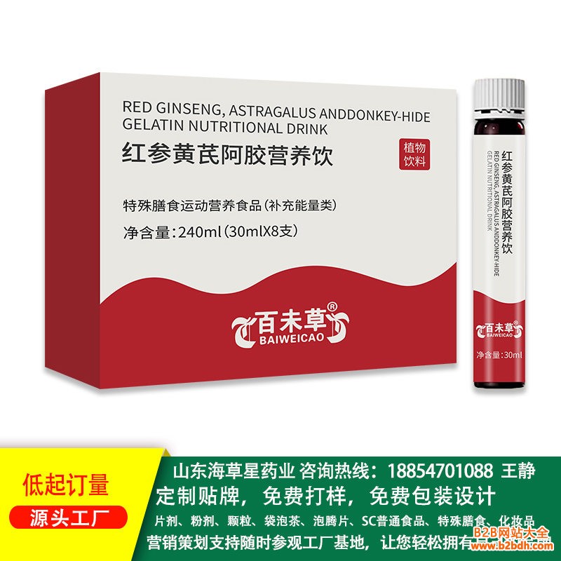 红参黄芪阿胶营养饮贴牌定制源头工厂新品研发代加工