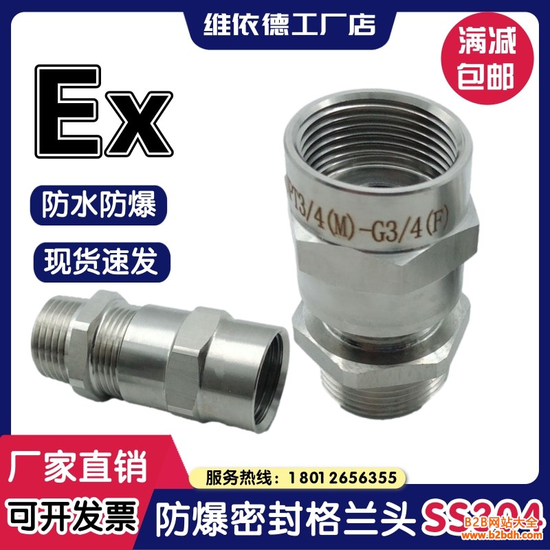 维依德品牌304不锈钢接管式内外螺纹防水防尘电缆格兰头