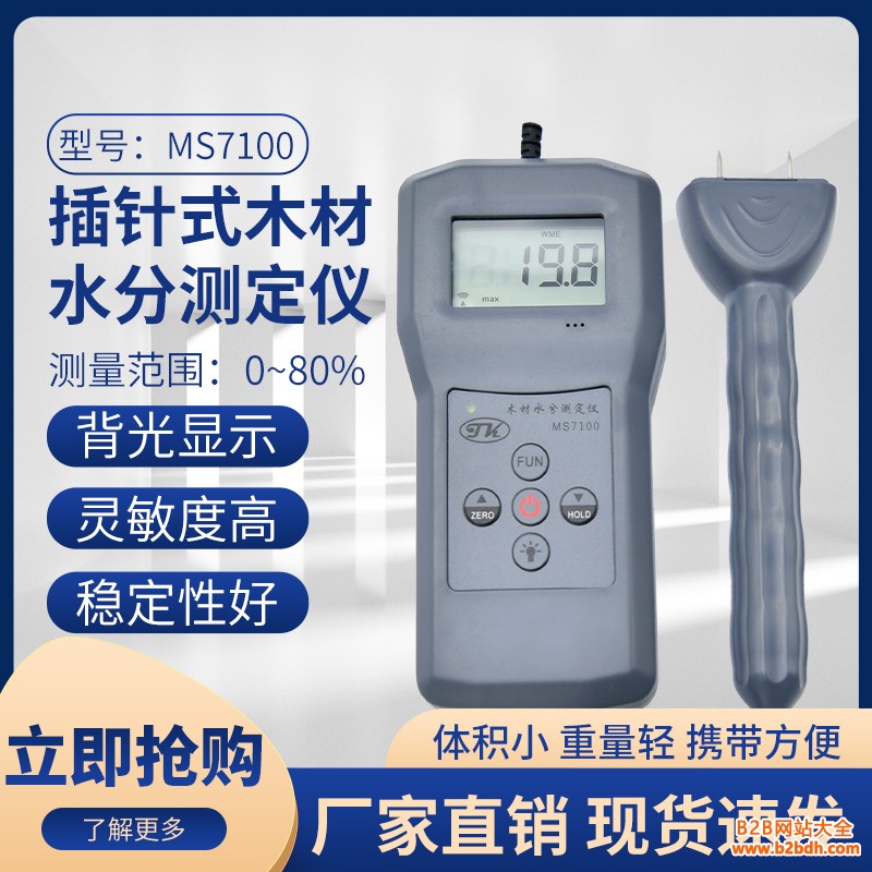 MS7100木材水分仪:主要用来测量木制品的含水率,被广大的木业界用户用来测量以下产品水分含量:木材、家具、地板、木门、木托盘、实木地板、复合地板、竹地板、木木棒、木板、原木、板材、红木、木制品、包装箱、砧板、胶合板、木粉、人造板、竹材、木料、密度板、纤维板、木方、木箱、木器、木头、木柄、竹板等150余种国内外木材的水分含量。该仪器测量精度高,性能稳定,适用于家具、木制品等行业检测其产品水分含量。MS7100木材水分测定仪产品特性