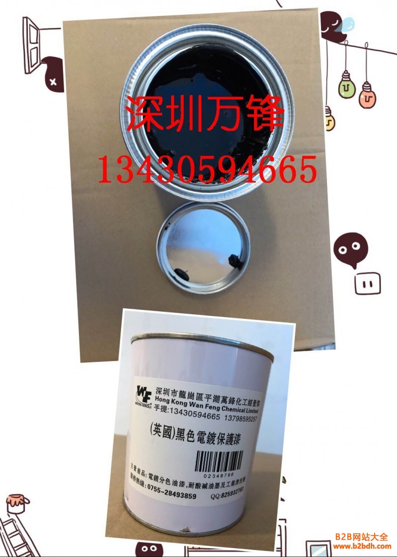 2. 涂 保 护 漆 於 不 需 电 镀 的 地 方 (用描笔、丝印移印或喷枪)如 要 稀 释 可 用 万 锋 化 工 之 开 油 水 或 二 甲 苯 或 中 华 制 漆 3054 开 油 水 稀 释