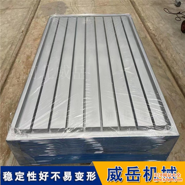 结构强度与承载能力是选材不可忽视的另一核心指标。T 型槽的设计目的是通过螺栓、压板固定工件,这就要求平台材料一定具备足够的抗拉强度、硬度与耐磨性。以常见的 1000mm×2000mm 平台为例,其额定承载可达 5-10 吨,若材料抗拉强度低于 200MPa,在承受重型工件时,T 型槽边缘易出现崩裂、磨损,导致工件固定松动,引发加工误差甚至安全事故。好的铸铁通过严格控制硅、锰等合金元素含量,可将硬度稳定在 170-240HBW,既保证了切削加工的便利性,又能抵御长期摩擦带来的损耗。反观选用低牌号铸铁制造的平台,不仅承载能力不足,T 型槽还易因反复受力而出现变形、磨损,大幅缩短平台的使用寿命。