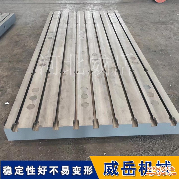 划线平台按照结构可以分为筋板式和箱体式,外观上大多是箱体式设计。工作面有长方形、正方形或圆形,采用刮研工艺,可以在工作面上加工出V形、T形、U形槽、燕尾槽、圆孔、长孔等多种形状。划线平板不仅可以用作机械零件平面度、平行度、直线度等形位公差的测量基准,还适用于工件、设备检测、划线、装配、焊接、组装、铆焊的平面基准量具。